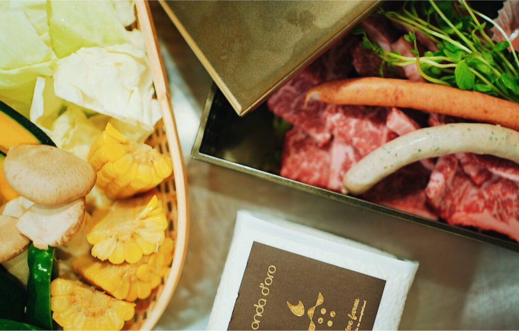 デッキに設置しておりますBBQグリル、またはキッチンにご用意しているホットプレートにてお召し上がりください。