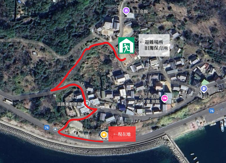津波・洪水・高潮等の際の避難場所は 「旧灘保育所(南あわじ市灘土生130) 」 となります。