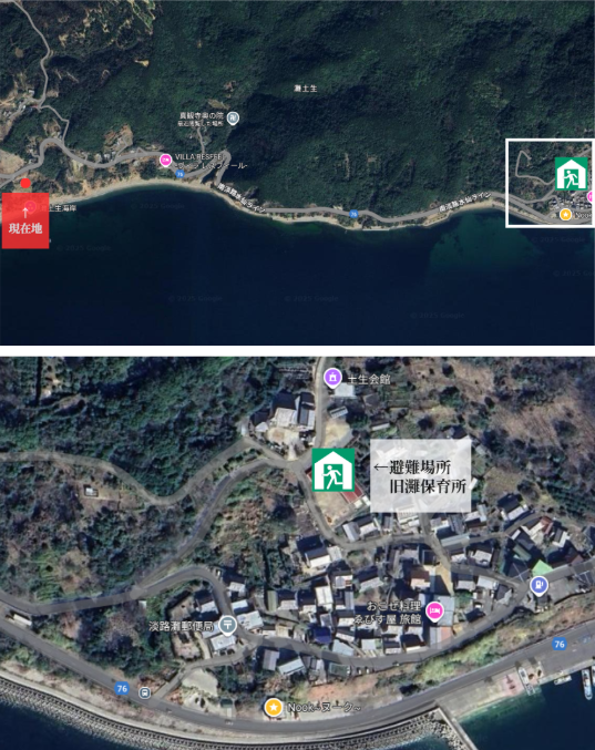 津波・洪水・高潮等の際の避難場所は 「旧灘保育所(南あわじ市灘土生130) 」 となります。
